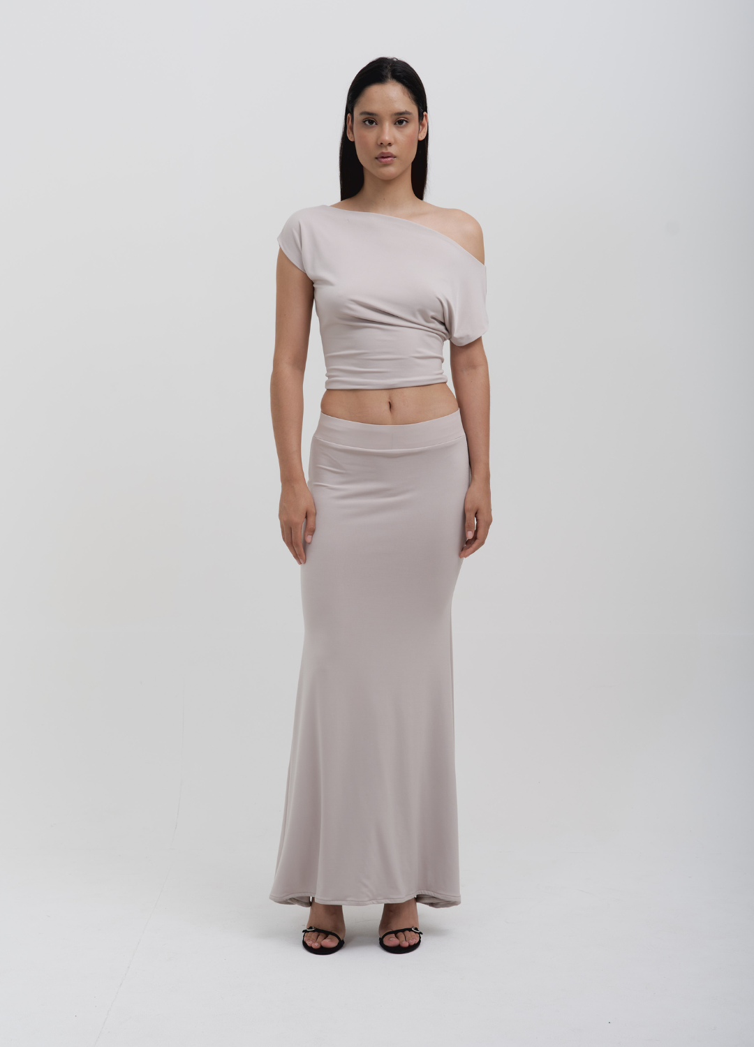 Minimalist design that gently embraces your curves. The Cream Mercedes Set, featuring an asymmetrical top and flowing skirt, highlights your silhouette with relaxed elegance. Perfect for expressing subtle, sophisticated femininity—effortless yet intentional.